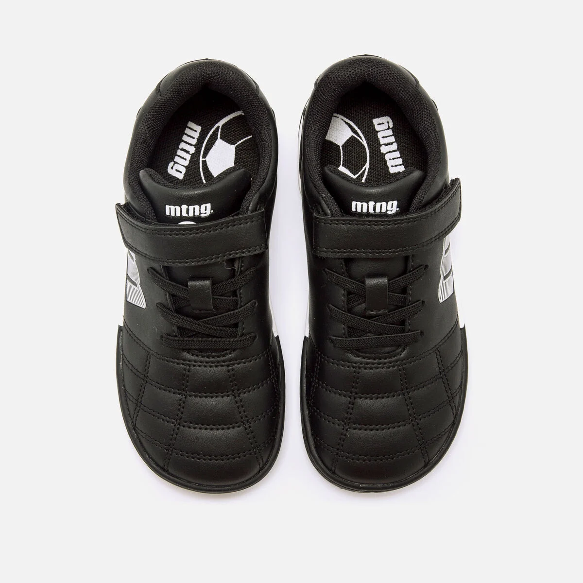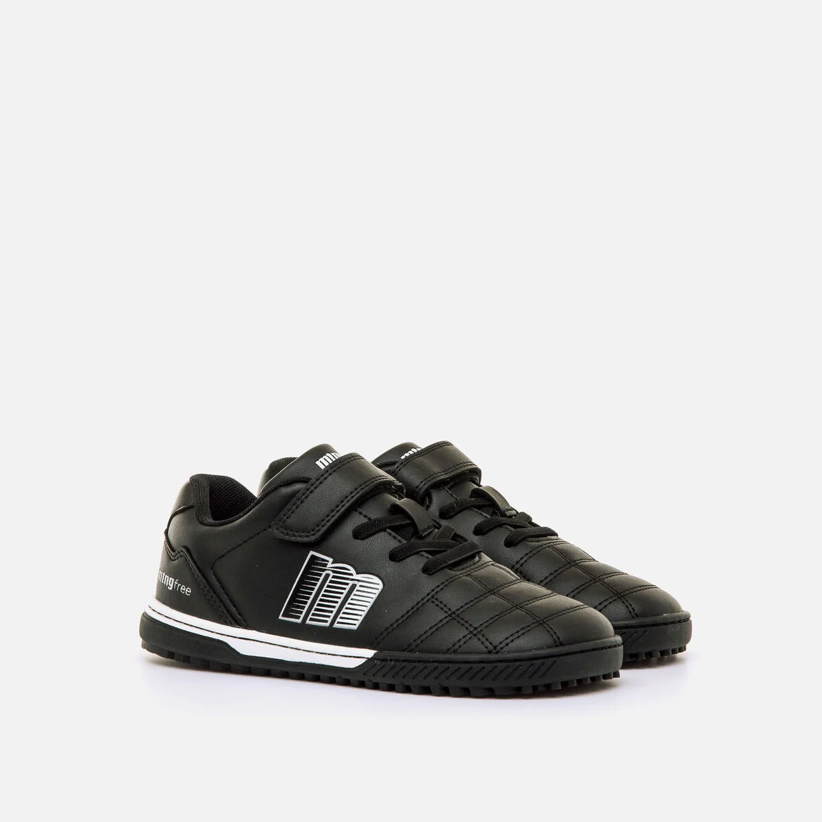 Zapatillas de fútbol multitaco para turf/cesped artificial en color negro y en blanco con naranja, modelo Free de Mustang. Diseñada con acolchado y con materiales que ofrecen mayor resistencia y durabilidad. El cierre adhesivo con cosido reforzado mejora el ajuste y facilita la autonomía del niño. Ideal para jugar y moverse con libertad, combinando funcionalidad y comodidad. Diseñado y desarrollado especialmente en colaboración con el Dr. Juanjo López, traumatólogo deportivo e infantil, para respetar el desarrollo natural del pie del niño y la niña. Gracias a su puntera ancha permite el libre movimiento de los dedos dentro del zapato. Las plantillas extraíbles facilitan comprobar si la talla del calzado es la correcta para tu hijo. Además, su fácil apertura facilita que el niño pueda descalzarse y calzarse de forma autónoma.