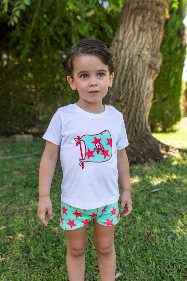 Boxer de licra fondo verde agua y estampado de estrellas. Solo el bóxer, sin camiseta.