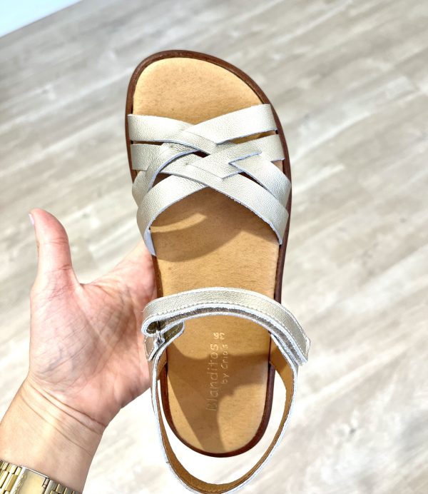 Están compuestas por sistema de cierre de velcro de doble recorrido y suela de goma antideslizante en color caramelo.